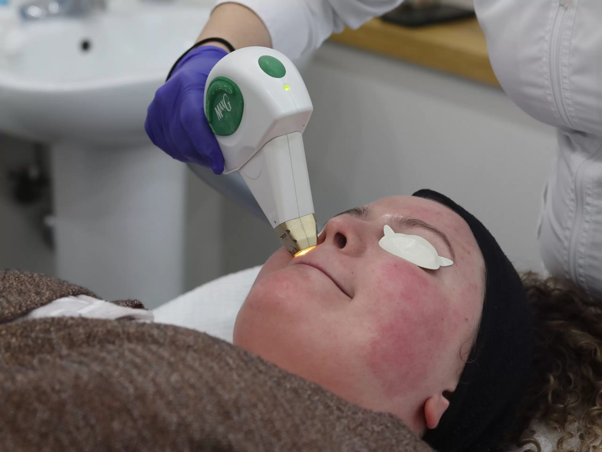 During IPL (Intense Pulsed Light) treatments, the device emits pulses of light into the skin. These light pulses penetrate the skin’s surface, targeting specific pigments and hemoglobin in small, broken blood vessels (capillaries).